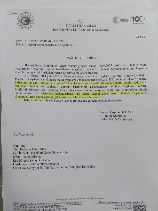 Bu nedenle, 30 Eylül 2025 tarihi sonuna kadar ihracat